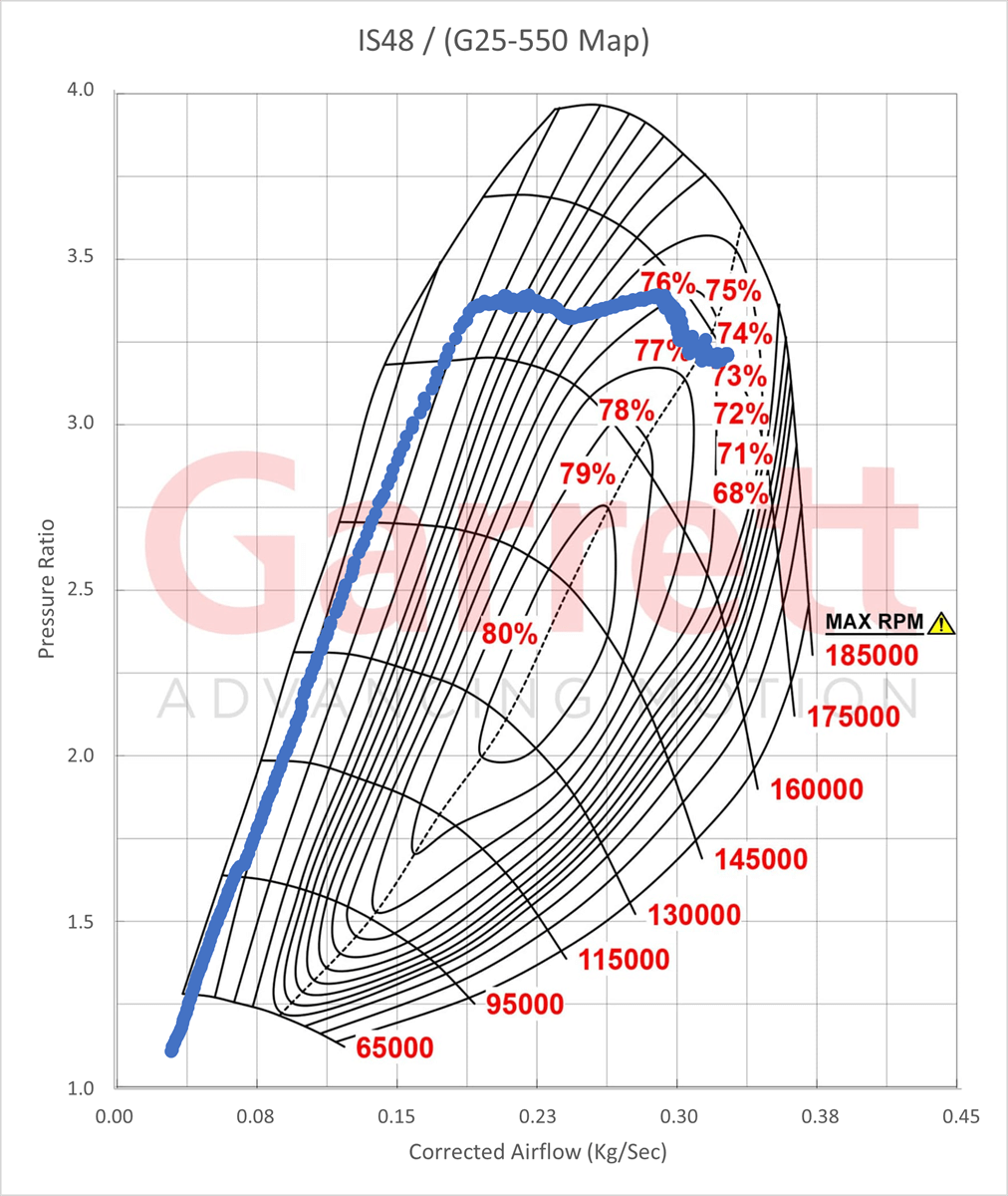 The previous posts discussing the Shuenk IS48 turbocharger focused on efforts to push the compressor into surge and exploring the maximum boost pressure that the turbo can produce.