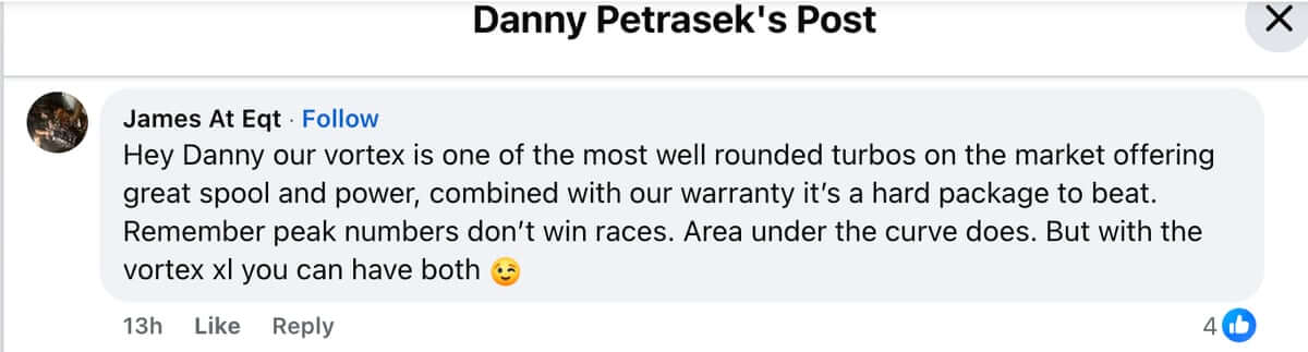 Comparative claim: “one of the most well rounded turbos on the market” asserts superiority vs. competitors.