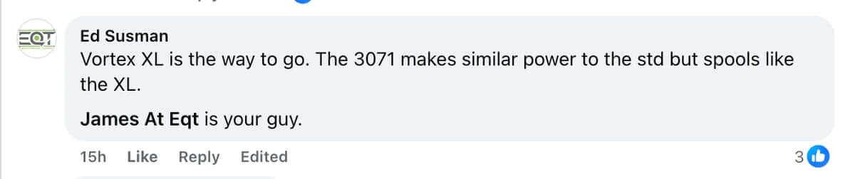 Concrete performance assertions: “great spool and power,” and “with the Vortex XL you can have both” assert measurable performance characteristics.