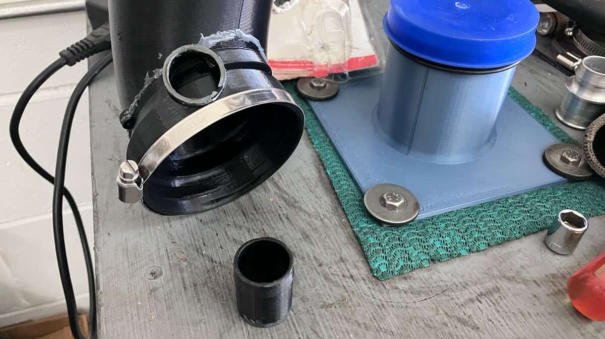 At the time of design, I had considered making a slip fit, where the PCV port would slide into a larger diameter base piece, but had thought the epoxy, along with the design of the part, which is angled in a way meant to minimize stress, would hold up – but that was not the case.