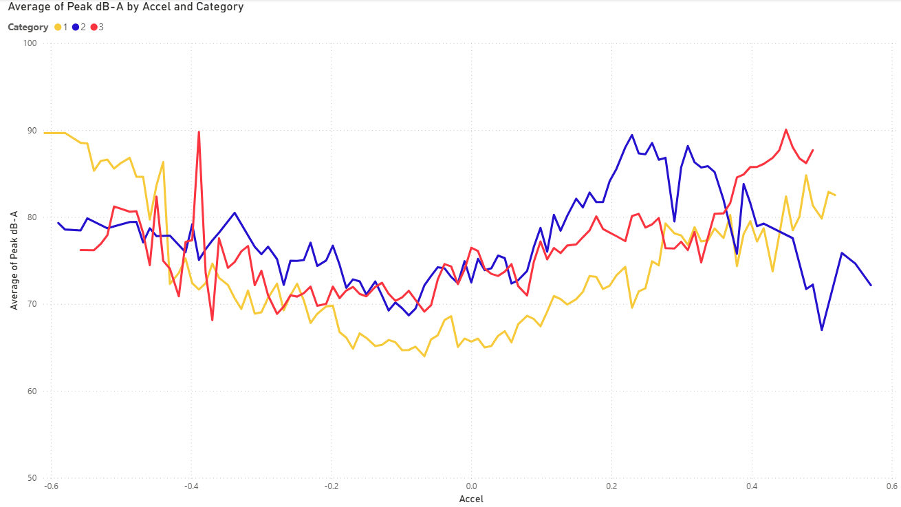 This chart shows the change in sound level with the vehicle’s acceleration (positive values) or deceleration (negative values).