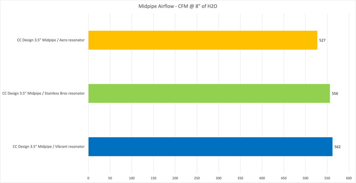 The flow test results with the midpipes are compared in the following chart: