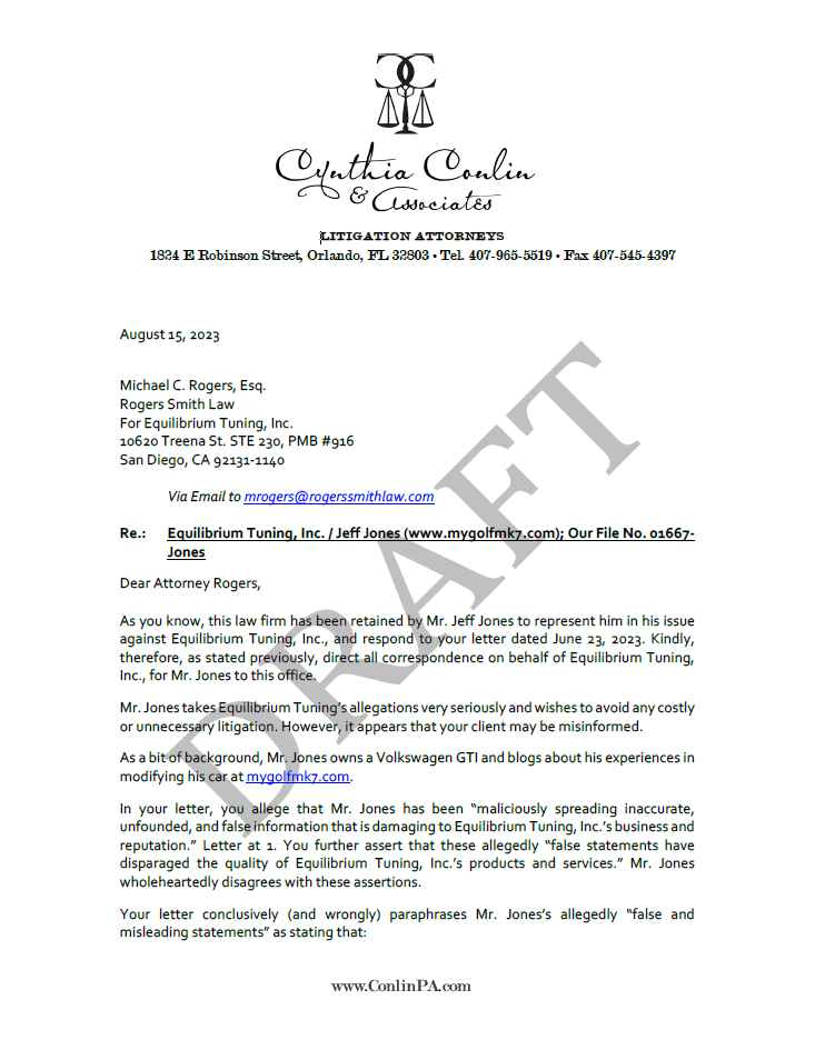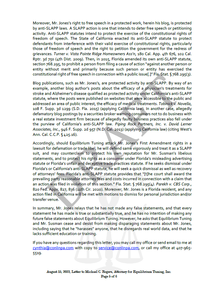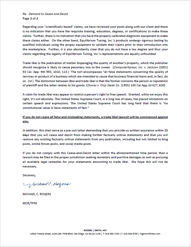 The following is the entire cease and desist letter that Ed Susman sent me, followed by my attorney’s response letter.