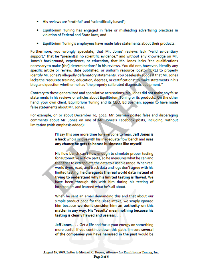 Meanwhile, the actual manufacturer of the Blaze intake — the person who built the product — had welcomed my testing, called this site a benchmark, and cooperated fully.