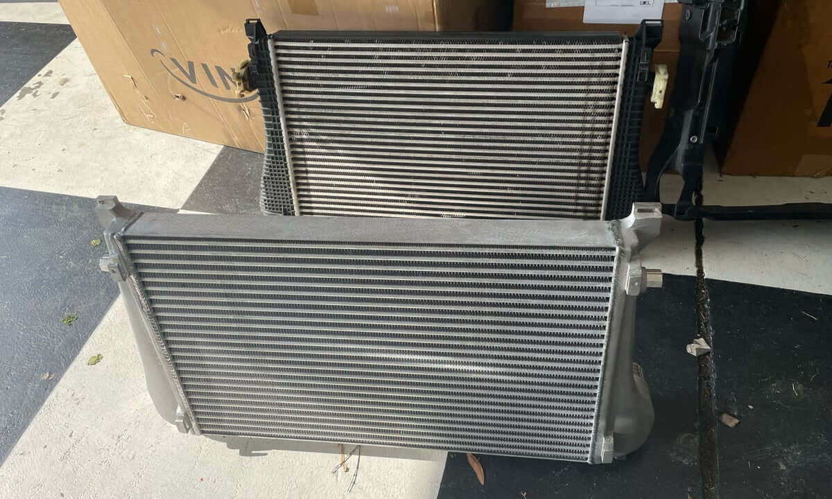 Since July 2025, the intercoolers have been changed to the current Majesty Competition tube-and-fin stock location IC and the Majesty bar-and-plate front-mount, configured as a bicooler.