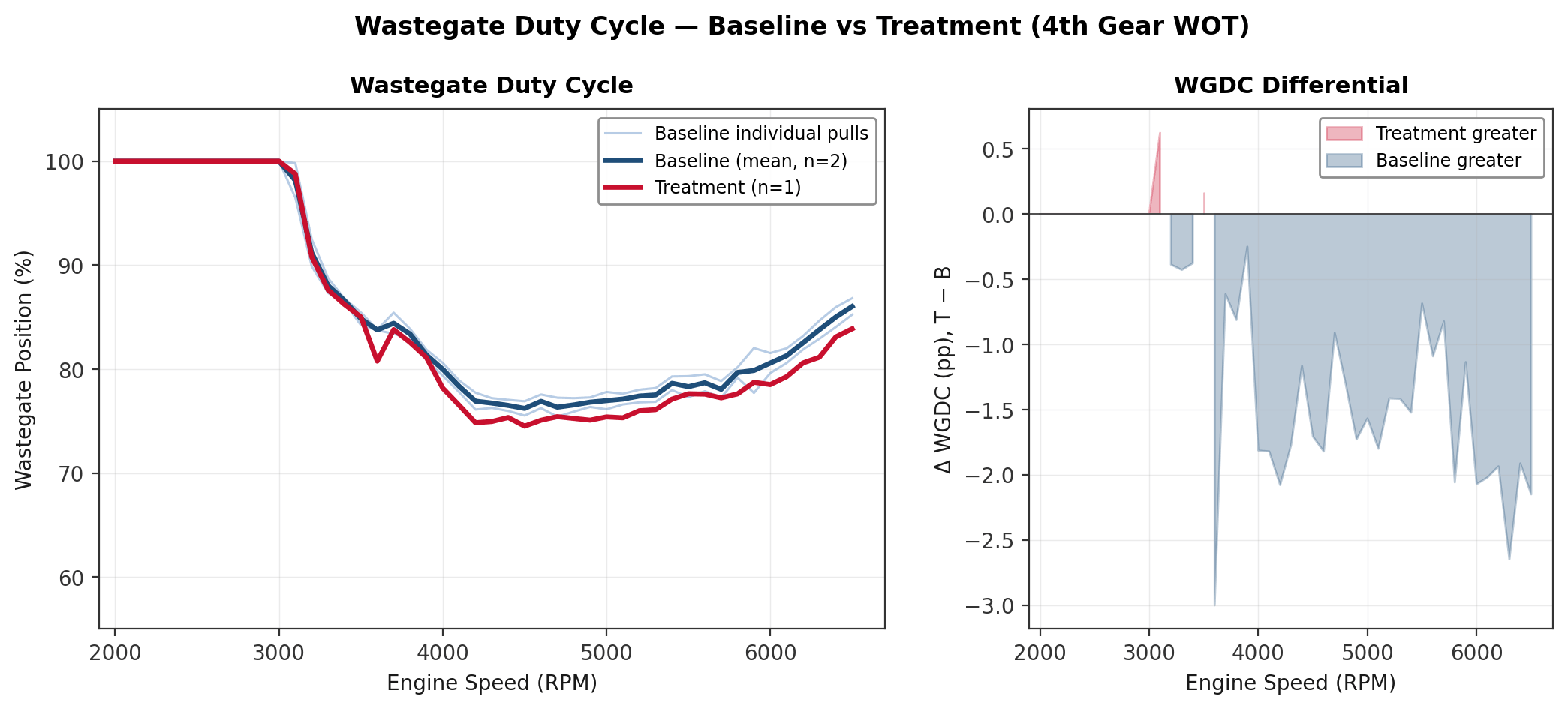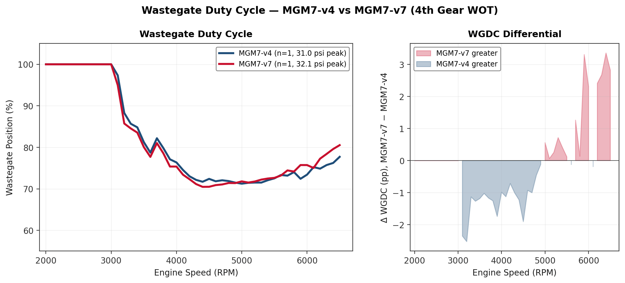There is some reduction of the wastegate duty cycle, approximately two (2) percentage points at the top end.